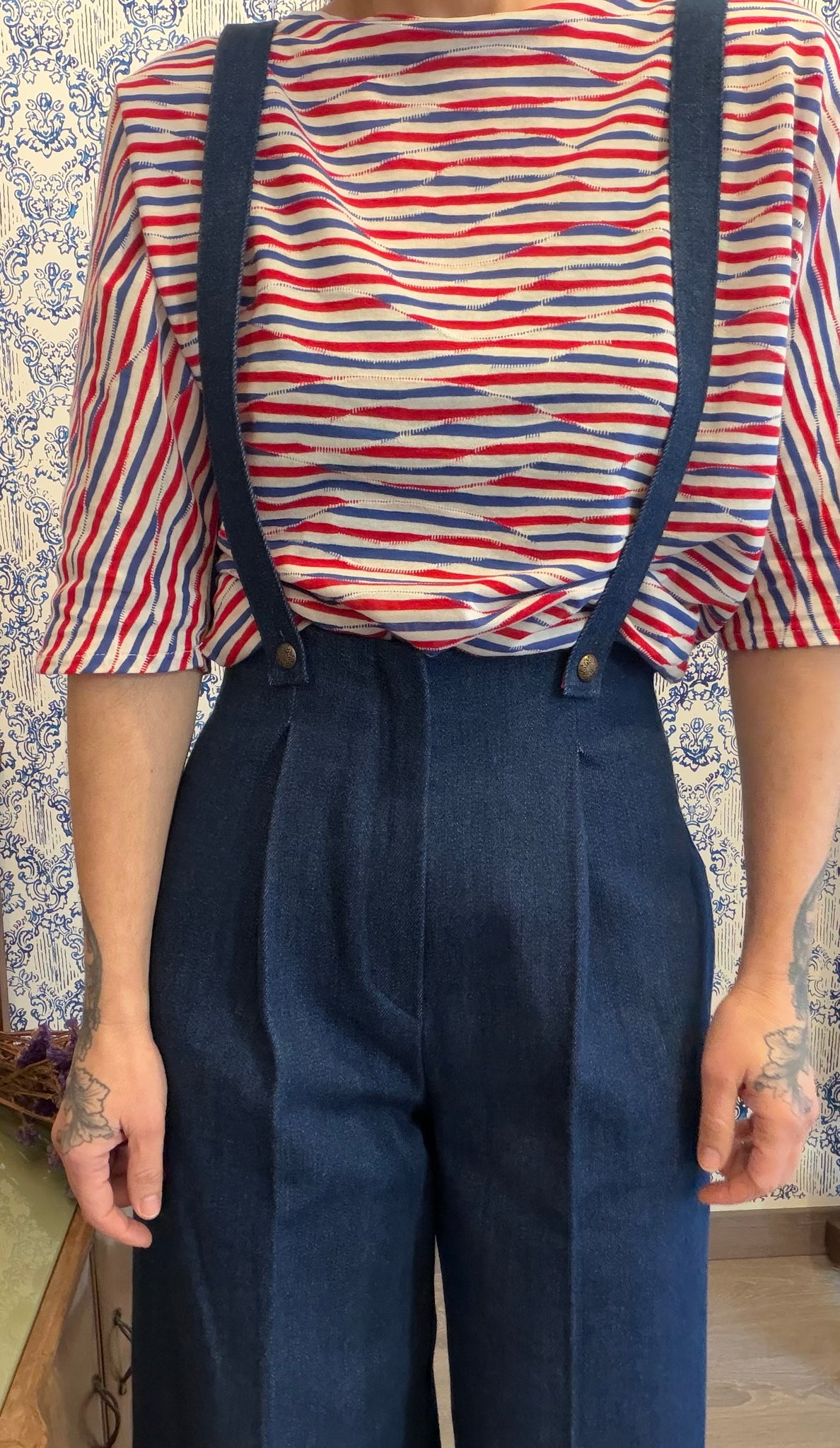 Ed eccolo il panta-bretelle Cocò nella versione jeans, quello per le 4 stagioni, perché per me il jeans è solo quello.