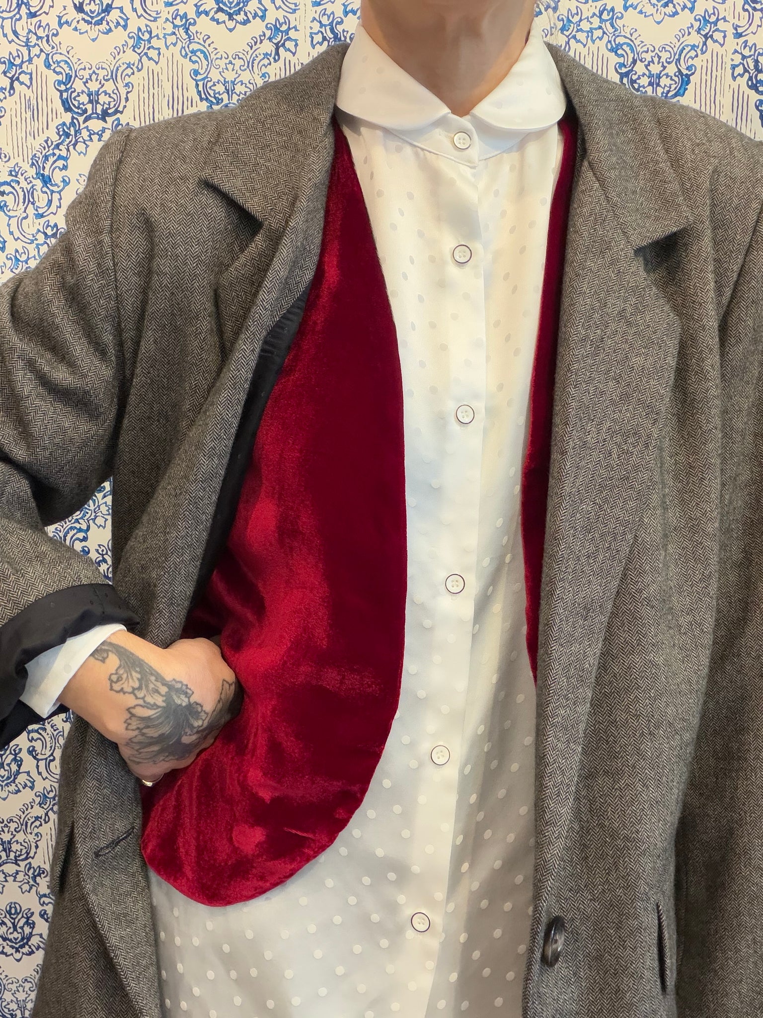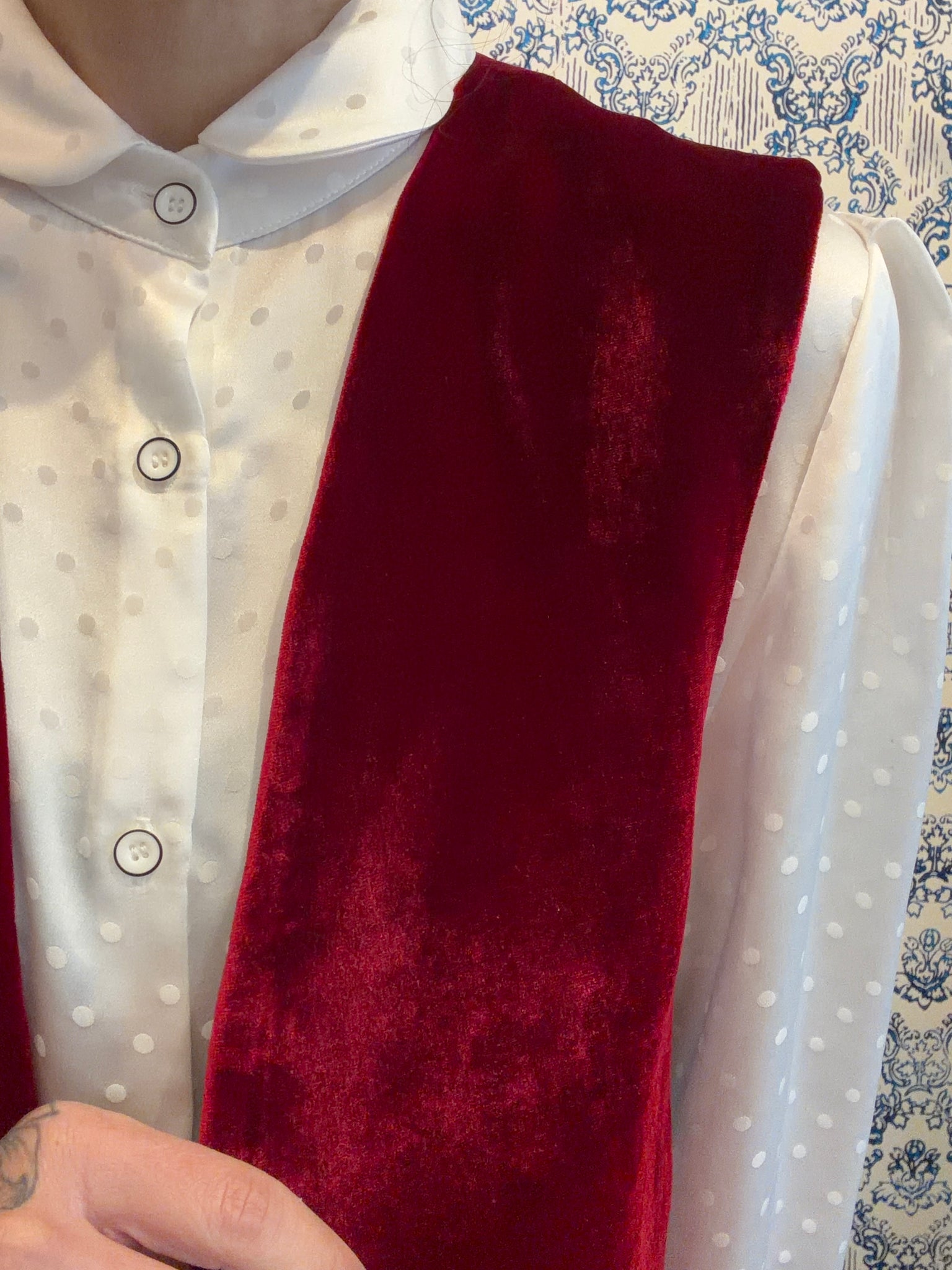 uno splendido velluto liscio in viscosa/seta rosso borgogna. Perché il rosa non è solo per Natale, ma è un colore deciso che illumina.