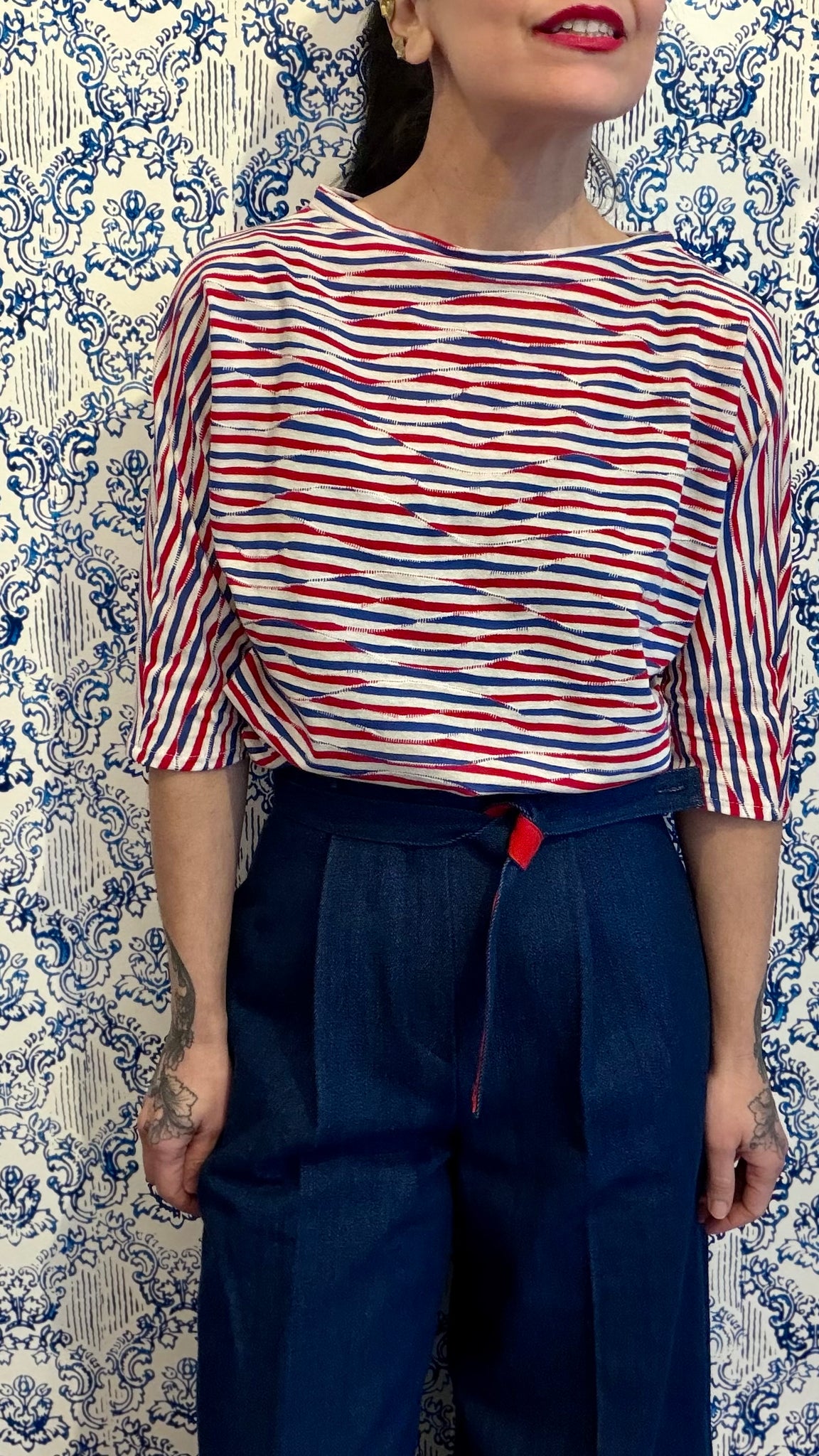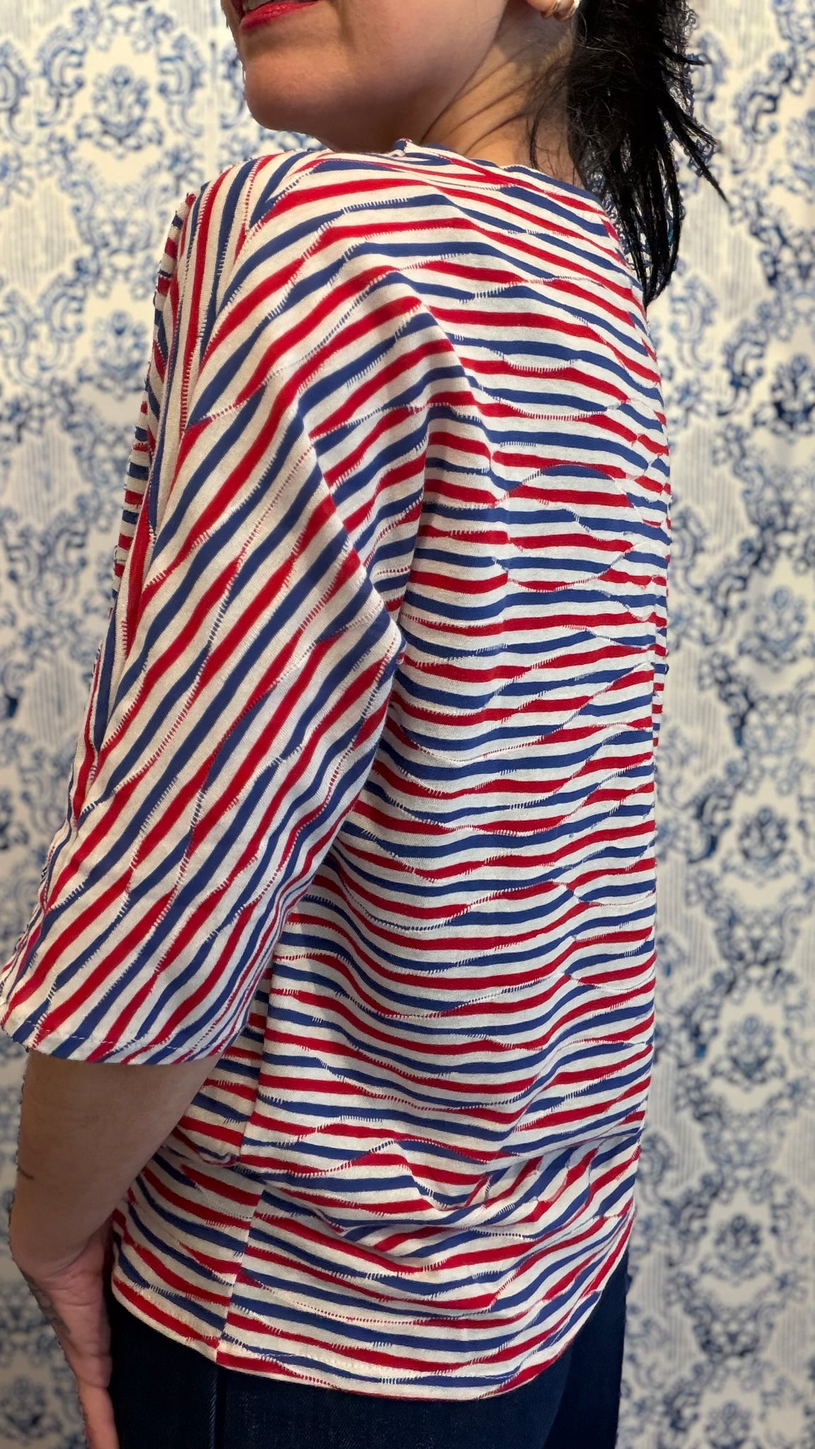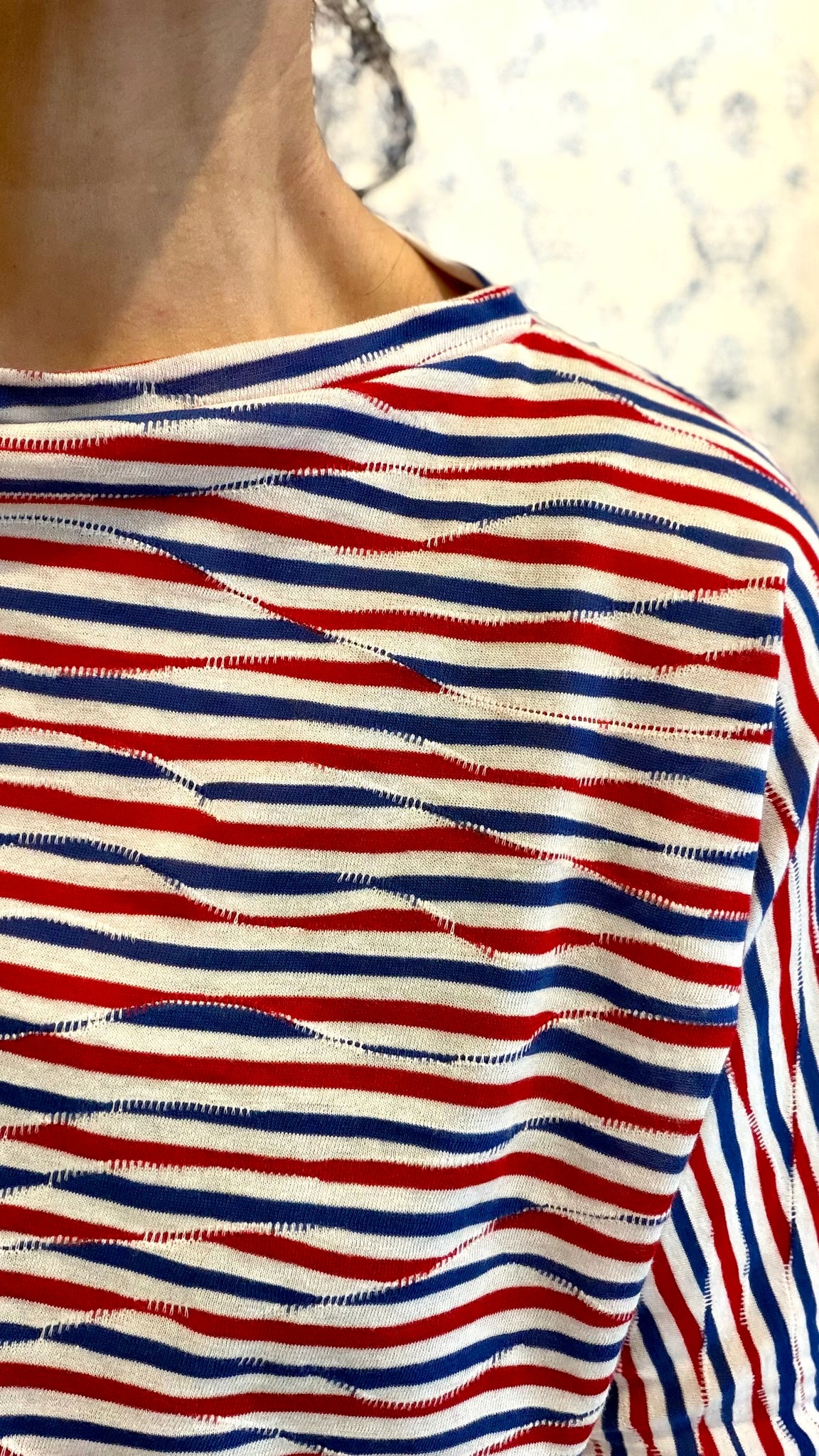 La marinière di quest’anno è in 100% jersey di cotone fresco e morbidissimo, con scollo a barchetta, manica kimono per adattarsi ad ogni tipo di spalla e lunghezza 3/4 per essere ancora più femminile, in 3 colori classici per una mariniere.