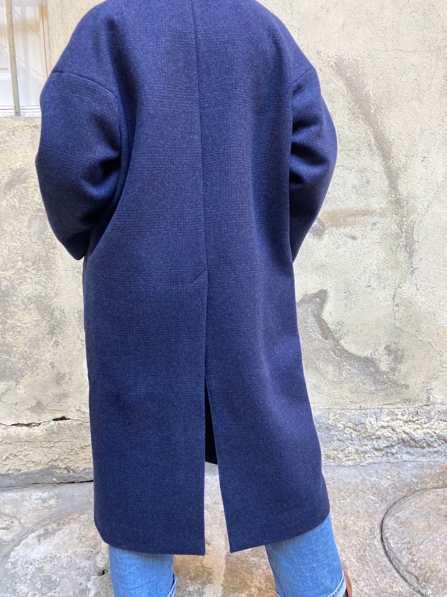 Importante lo spacco centrale sul retro, più alto rispetto al normale, perché lo spacco in un cappotto dona movimento e slancia molto la figura armonizzando tutto.