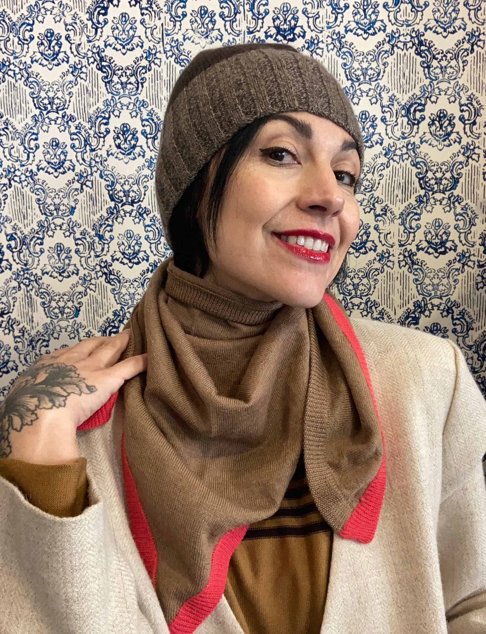 Nella versione in lana merino i colori sono esplosivi e vibranti, perfetti per accendere un capospalla in tinta unita scura.